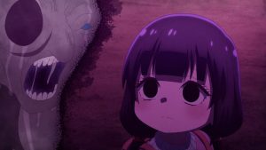 In the first half, Kaya and her father are walking home when they hear a missing child announcement. When they found that girl, she seemed scared and didn’t want to go home. Basically, Kaya saw something following the girl, who got cornered in a dead end, trying to escape. Thankfully, Kaya saved her by defeating the spirit. Apparently, we have some clues as to what might be the spirit. It’s the spirit of an old man near a sewer where the girl’s paper airplane hit. Makes you wonder why this spirit is following the girl.
